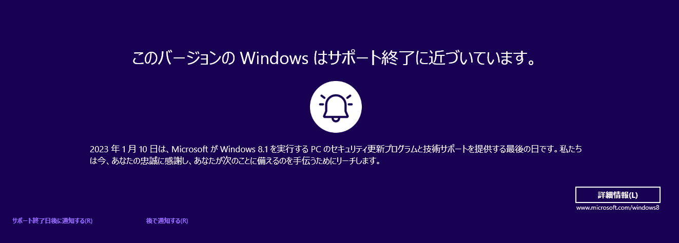 2023年1月10日にWindows8.1のマイクロソフトのサポートが終了しました。