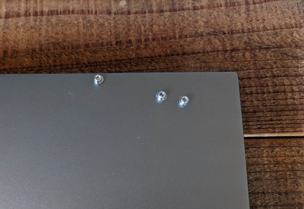 内側はベゼル(液晶パネルの縁の部分)でかくれたため、ボルトは見えません。